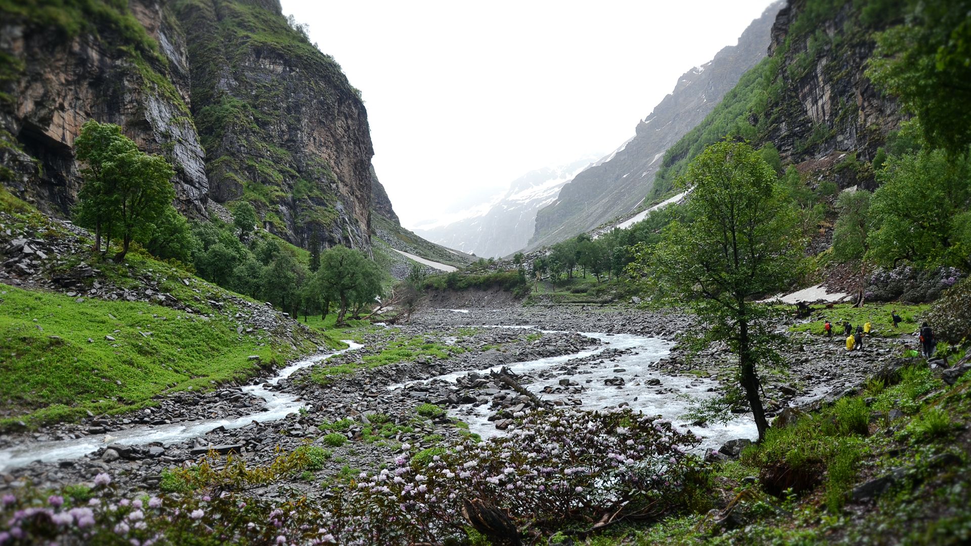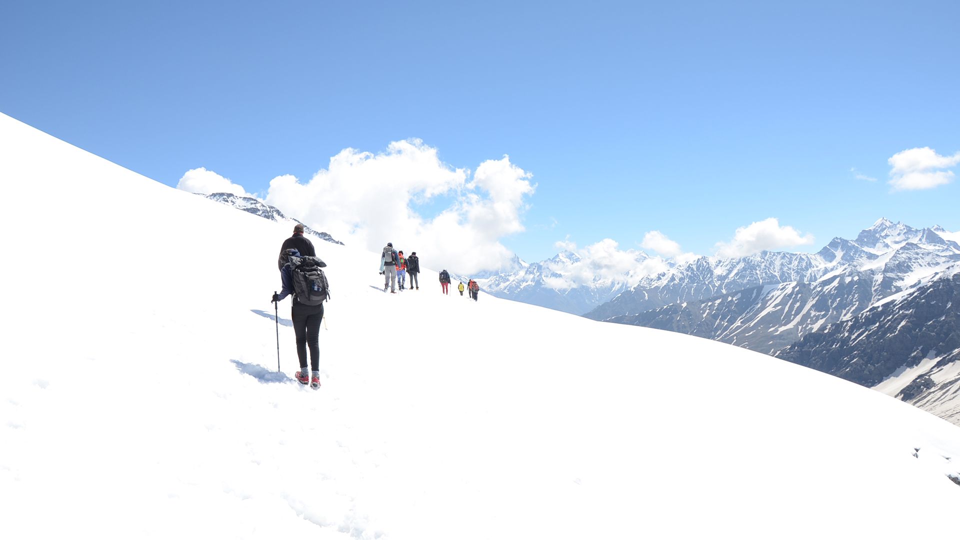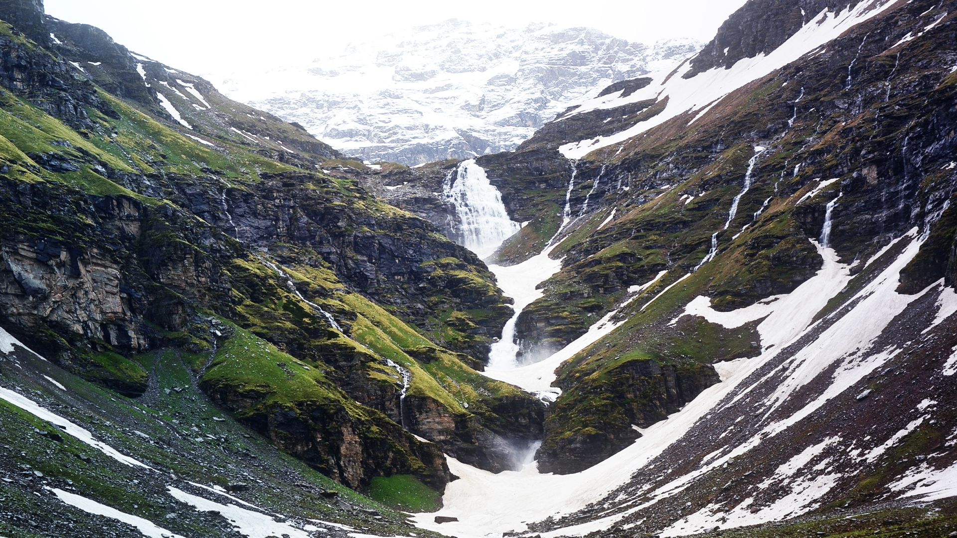 Rupin Pass is a high altitude pass across the Himalaya mountain range in state of Himachal Pradesh, India. It lies on a traditional shepherd and hiking route which starts from Dhaula in Uttarakhand and ends in Sangla in Himachal Pradesh. The path itself is located across mostly uninhabited areas in the Himalayan ranges above sea level. Rupin Pass trek consists of trails dug out of rock faces and wooden bridges, cut through deep dark folds in the mountain, glaciers and icy slopes, and over snow fields. Along the way there are white Rhododendrons and expanse of green meadows.